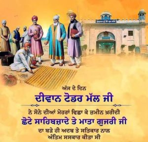 *ਉਸ ਕਾ ਵਰਤਮਾਨ ਕੁਛ ਭੀ ਹੋ, ਪਰ ਭਵਿਸ਼ ਹੈ ਮਹਾਂ ਮਹਾਨ*।13 ਪੋਹ 28 ਦਸੰਬਰ ਵਾਲੇ ਦਿਨ (2025 ਅਨੁਸਾਰ) ਦਿਨ ਸਾਹਿਬਜ਼ਾਦਿਆਂ ਦੀ ਸ਼ਹੀਦੀ ਦੀ ਖਬਰ ਮਾਤਾ ਗੁਜਰੀ ਜੀ ਪਾਸ ਪਹੁੰਚਾਉਣ ਲਈ ਦੀਵਾਨ ਟੋਡਰ ਮੱਲ ਨੂੰ ਕਿਹਾ ਗਿਆ, ਜੋ ਕਿ ਇਕ ਸਫਲ ਵਪਾਰੀ ਸੀ ਅਤੇ ਗੁਰੂ ਸਾਹਿਬਾਨ ਦੀਆਂ ਸਿੱਖਿਆਵਾਂ ਦਾ ਅਨੁਯਾਈ ਸੀ। ਉਸ ਨੇ ਭਰੇ ਮਨ ਨਾਲ *ਮਾਤਾ ਜੀ ਨੂੰ ਇਹ ਕਹਿਰ ਦੀ ਖ਼ਬਰ ਸੁਣਾਈ ਤਾਂ ਉਹ ਠੰਡੇ ਬੁਰਜ ਵਿਚ ਬੰਦ, ਕਹਿਰ ਦੀ ਠੰਢ ਨਾ ਸਹਾਰਦੇ ਹੋਏ ਆਪਣੇ ਪੰਜ-ਭੂਤਕ ਬਿਰਧ ਸਰੀਰ ਨਾਲ ਅੱਤ ਦੇ ਤਸੀਹੇ ਝਲਦੇ ਹੋਏ ਸ਼ਹੀਦੀ ਪ੍ਰਾਪਤ ਕਰ ਗਏ।*