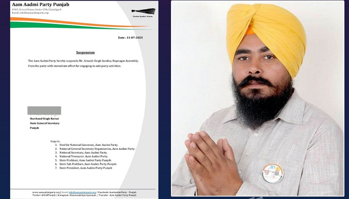 ਆਮ ਆਦਮੀ ਪਾਰਟੀ ਨੇ ਸਾਬਕਾ ਵਿਧਾਇਕ ‘ਤੇ ਵੱਡੀ ਕਾਰਵਾਈ ਕੀਤੀ ਹੈ। ਮਾਨ ਸਰਕਾਰ ਨੇ ਰੋਪੜ ਤੋਂ ਸਾਬਕਾ ਵਿਧਾਇਕ ਅਮਰਜੀਤ ਸਿੰਘ ਸੰਦੋਆ ਨੂੰ ਪਾਰਟੀ ‘ਚੋਂ ਬਾਹਰ ਦਾ ਰਸਤਾ ਦਿਖਾ ਦਿੱਤਾ ਹੈ। ਇਸ ਨੂੰ ਲੈਕੇ ਇੱਕ ਪੱਤਰ ਵੀ ਜਾਰੀ ਕਰ ਦਿੱਤਾ ਗਿਆ ਹੈ।