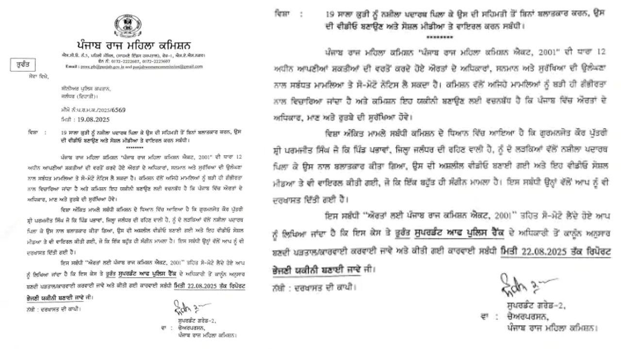 ਜਲੰਧਰ ‘ਚ ਅਸ਼ਲੀਲ ਵੀਡੀਓ ਲੀਕ; ਪੰਜਾਬ ਮਹਿਲਾ ਕਮਿਸ਼ਨ ਨੇ SSP ਜਲੰਧਰ ਤੋਂ ਮੰਗੀ ਰਿਪੋਰਟ