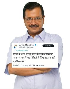 ਦਿੱਲੀ ਵਿੱਚ ਹੜ ਪੀੜਤਾ ਲਈ ਘਰ ਘਰ ਜਾ ਕੇ ਮੰਗਣਗੇ ਆਮ ਆਦਮੀ ਪਾਰਟੀ ਵਾਲੇ :ਕੇਜਰੀਵਾਲ