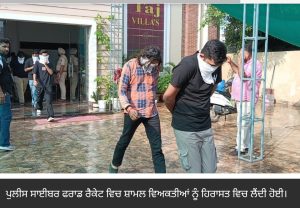 ਪੁਲੀਸ ਸਾਈਬਰ ਫਰਾਡ ਰੈਕੇਟ ਵਿਚ ਸ਼ਾਮਲ ਵਿਅਕਤੀਆਂ ਨੂੰ ਹਿਰਾਸਤ ਵਿਚ ਲੈਂਦੀ ਹੋਈ।