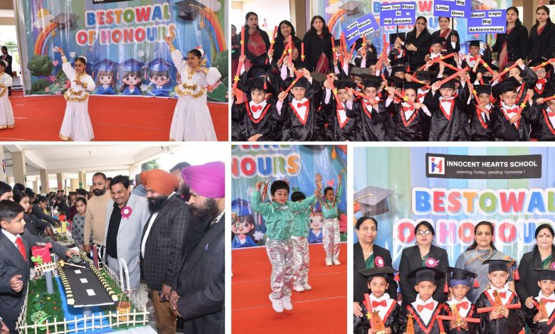 Innocent Hearts School, Cantt.-Jandiala Road, successfully organised its much-awaited “Bestowal of Honours – Graduation Ceremony”, for the students of KG 2 filling the campus with pride, joy and excitement. The ceremony marked a significant milestone in the lives of the young graduates as they stepped forward to begin a new academic journey.The event was graced by the esteemed presence of Mrs. Aradhna Bowry (Executive Director Colleges), Ms. Sharmila Nakra (Deputy Director – Cultural Affairs), Ms. Gurmeet Kaur (Co-ordinator – Innokids) and the worthy Principal Ms. Sonali Manocha. The occasion was further honoured by the presence of distinguished guests — Mr. Sandeep Bassu (Sarpanch, Diwali), Mr. Gurinder Pal Singh (Sarpanch, Jamsher) and Ms. Meenu Rana (Sarpanch, Khusropur).